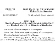 Ngày 27 tháng 8 năm 2025, Chính phủ đã ban hành Nghị định số 235/2025/NĐ-CP sửa đổi, bổ sung một số điều của Nghị định 45/2012/NĐ-CP ngày 21 tháng 5 năm 2012 về khuyến công. Nghị ...
