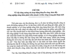 Ngày 04/12/2025, Bộ trưởng Bộ Công Thương Nguyễn Hồng Diên đã ký ban hành Chỉ thị số 20/CT-BCT về việc tăng cường hoạt động khuyến công, thúc đẩy công nghiệp nông thôn phát triển nhanh và bền vững trong giai đoạn mới. Chỉ thị được ban hành trong bối cảnh hệ thống khuyến công thời gian qua đã đạt nhiều kết quả tích cực, song vẫn tồn tại hạn chế cần khắc phục để đáp ứng yêu cầu phát triển hiện nay.