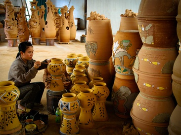 Sản phẩm gốm Phù Lãng thu hút bởi hoa văn tinh tế