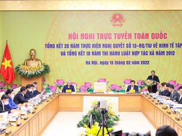 Sáng ngày 15/2, Thủ tướng Chính phủ Phạm Minh Chính chủ trì Hội nghị trực tuyến toàn quốc tổng kết 20 năm thực hiện Nghị quyết số 13-NQ/TW về kinh tế tập thể và tổng kết 10 năm ...