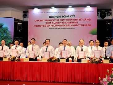 Sáng 25-3, tại TP Vinh (Nghệ An), UBND TPHCM và UBND các tỉnh Nghệ An, Thanh Hóa, Hà Tĩnh, Quảng Trị, Quảng Bình, Thừa Thiên Huế, Hà Nam, Cao Bằng, Bắc Kạn đã tổ chức Hội nghị tổng kết Chương trình hợp tác phát triển kinh tế - xã hội giữa TPHCM với một số địa phương phía Bắc và Bắc Trung bộ.