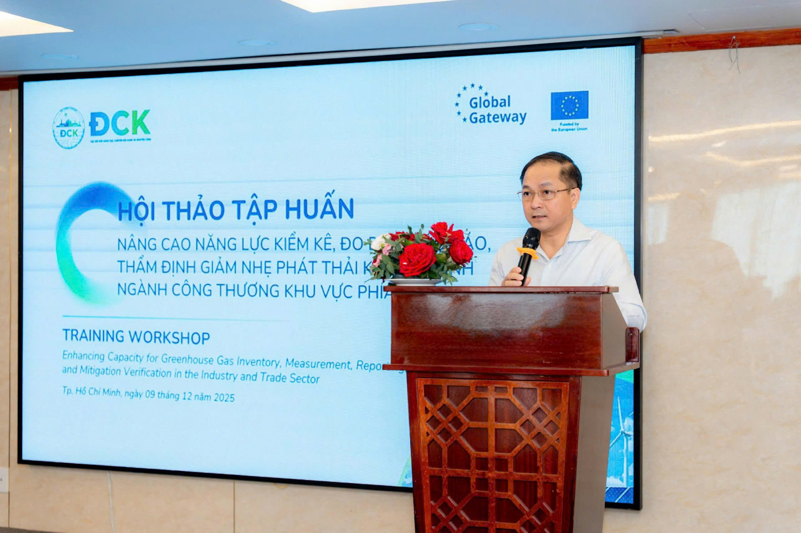 Thay mặt Bộ Công Thương, đại diện Cục Đổi mới sáng tạo, Chuyển đổi xanh và Khuyến công đã phát biểu khai mạc, nhấn mạnh tầm quan trọng của việc nâng cao năng lực triển khai quy định pháp luật về giảm nhẹ phát thải nhà kính. Trong lời phát biểu, lãnh đạo Cục nhấn mạnh rằng biến đổi khí hậu đã và đang trở thành thách thức lớn nhất của nhân loại, tác động mạnh mẽ đến nền kinh tế, an ninh năng lượng và định hướng phát triển bền vững của Việt Nam trong nhiều thập niên tới. Bối cảnh đó đòi hỏi sự chuyển đổi chiến lược, thay đổi tư duy quản lý và áp dụng các công cụ đo lường phát thải một cách khoa học, chuẩn xác và thống nhất trong toàn ngành Công Thương